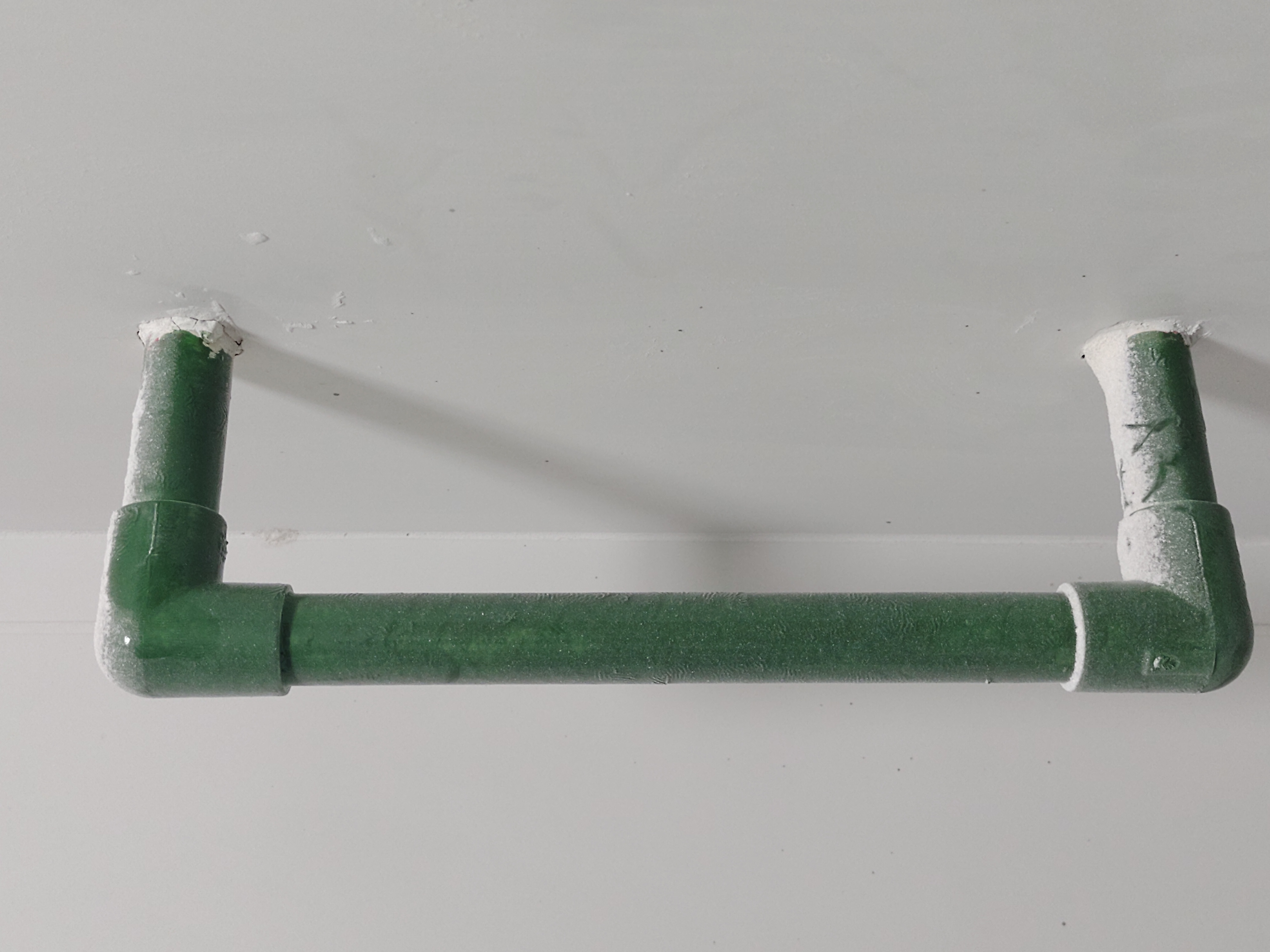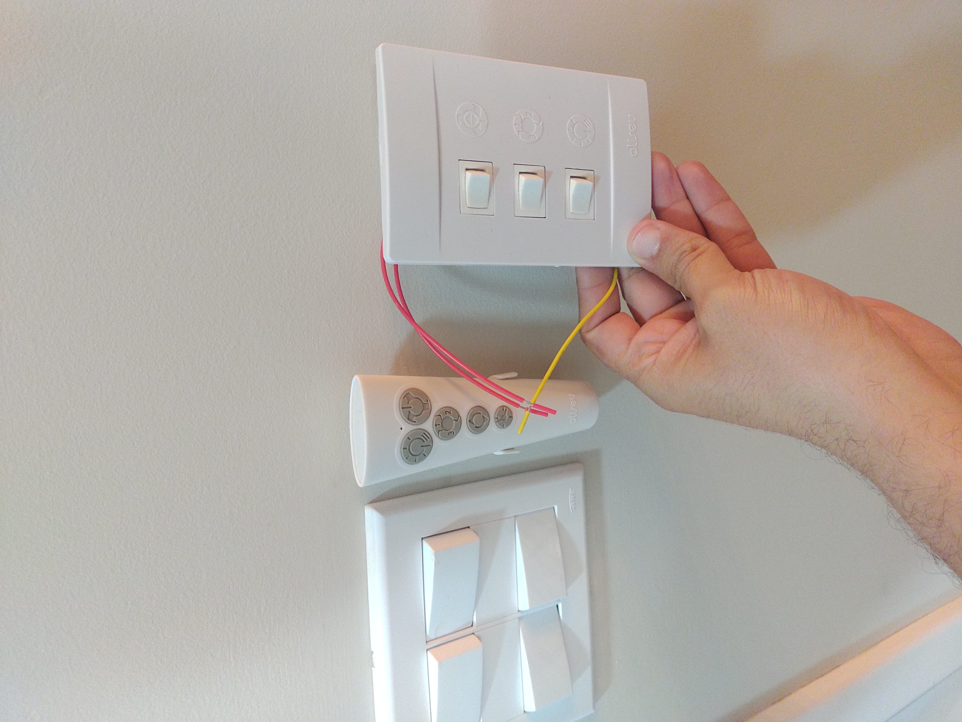 Conversando com outros profissionais, descobrimos que o ventilador da sala poderia ter sido instalado de forma a ser acionado tanto manualmente na parede quanto via controle remoto, mas não nos questionaram se gostaríamos de ter o acionamento na parede também, e a peça ficou sobrando |